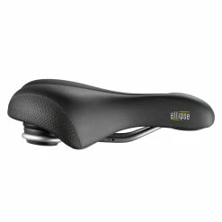 Trotz der Aufbauhöhe wirkt der Komfort-Sattel nicht klobig, sondern fällt durch die fließend designte Polsterung mit Weichteil schonendem Entlastungskanal bis ins Sattelheck und mittiger Ventilationsöffnung auf. So wird nicht nur das Körpergewicht gleichmäßig über die Sitzbeinhöcker aufgenommen, sondern auch der Steiß- und Dammbereich vor zu hoher Druckeinwirkung geschont. Mit dem wasserdicht verschweißten Bezug ist der Sattel wie gemacht für tägliche Fahrten bei Wind und Wetter und kann einiges einstecken. Er ist äußerst strapazierfähig und behält auch nach unzähligen Fahrten seine dämpfenden Eigenschaften. Für alle, die es gerne etwas weicher haben, bietet der ergonomische Ellipse Relaxed Gel von Selle Royal spürbare Entspannung beim Radfahren.